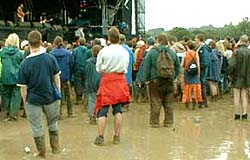 And as for the bands, well I'd love to have seen Dylan, but the Pyramid Stage was hopeless, especially by Sunday night. Think about it, if someone said to you that the next time Dylan plays Hammersmith Apollo, they'll knock a hole in the back wall and let you watch from there while someone continually hoses you down and other people throw buckets of mud at you, you wouldn't go. I figured it was the same deal. It was just too grim for the usual Glastonbury bands-frenzy or serious drugs-frenzy.The real mystery to me was Tony Bennett. The schmaltzy Radio 2 crooning twat was doing the Sunday afternoon on the Pyramid stage before Sonic Youth. On the assumption that nobody genuinely thinks he's any good, who the fuck is going to wade through half a mile of quag to stand ankle deep in mud to watch someone crap FOR A LAUGH?? I almost went just to see who else was going.